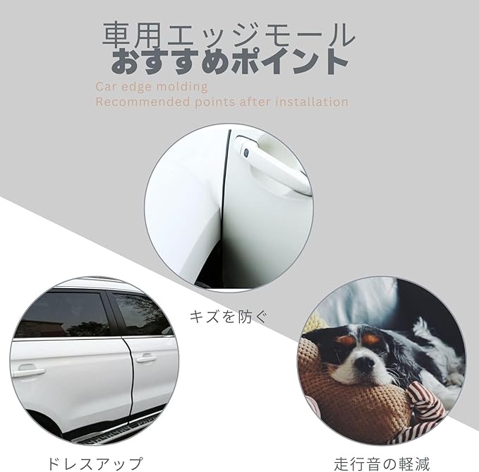 静音効果で快適ドライブ:ドアの開閉時の擦り傷防止だけでなく、走行時の風切り音を低減。静かで快適なドライブ環境を提供します。