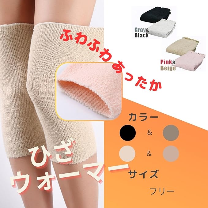 [K-AAFY] 膝サポーター ひざウォーマー 2色セット ふわふわ 伸びる フリーサイズ 保護 防寒 保温