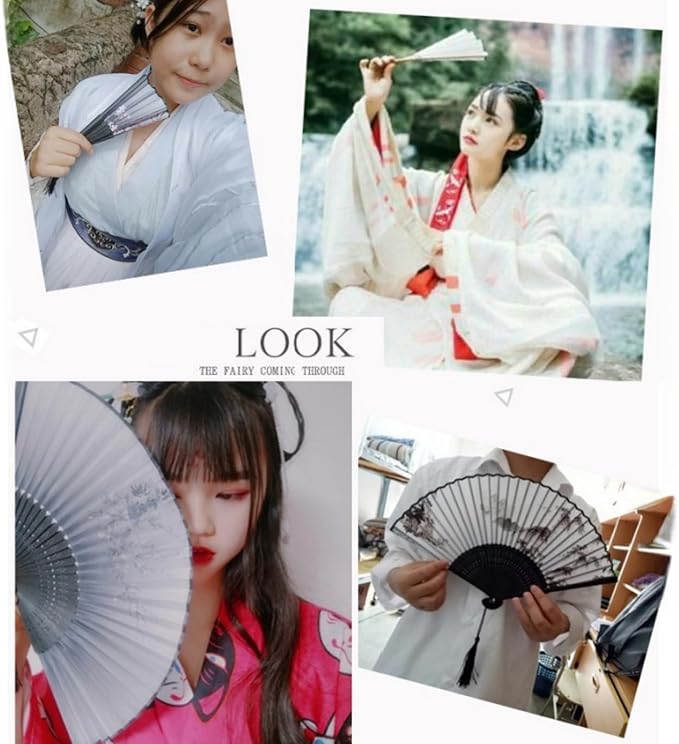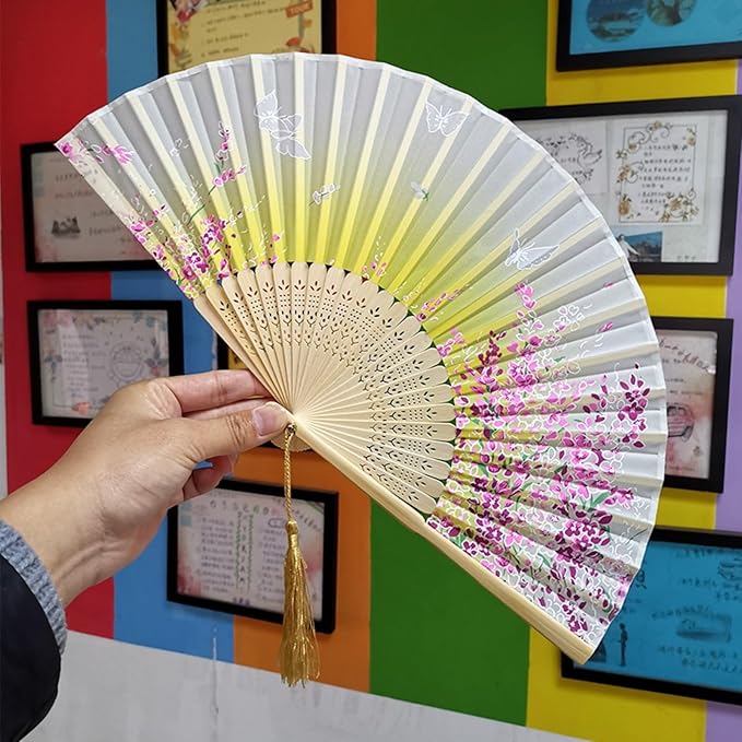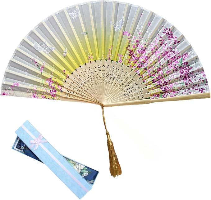 [Jinchuan] 扇子 レーディス 扇子袋&箱付き シルク扇子 絹 桜 花 蝶 和柄 折りたたみ式 和装小物 女性用 男性 婦人 和風扇子 ダンス おみやげ プレゼント