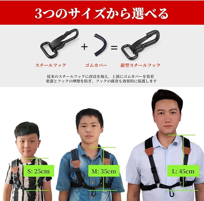 Jinchuan サックスストラップ ハーネス型 大人用 子供用 肩掛け式 ショルダータイプ クッション付き ソプラノ アルト テナーに対応 (Largeサイズ 体重50kg以上・身長160cm以上に対応)