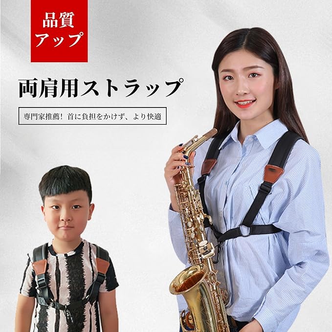 演奏中の負担が軽減されるサックスストラップ、ショルダーハーネスタイプです