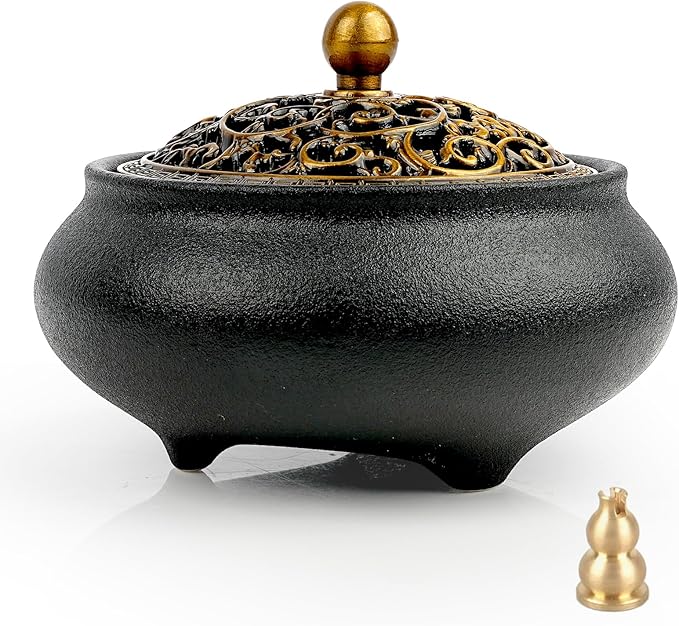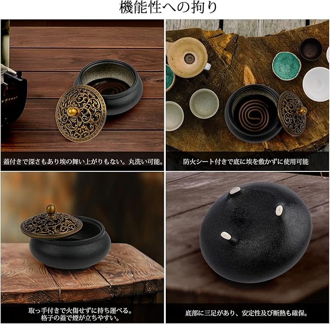 ★【陶器&耐久性】陶器製の香炉なので、耐久性と耐腐食性が強いです。3点の脚で安定感もあります。口も広く作られており、お手入れも簡単です。