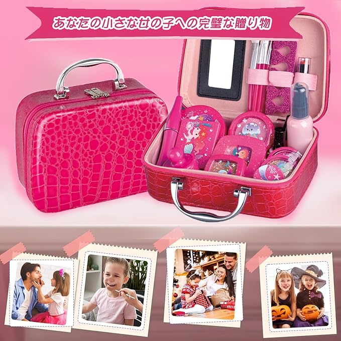 【安全無毒なプラスチック製おもちゃ】本化粧セットは本物の化粧品ではございません。素材は環境に優しいABSプラスチックを使い、丁寧に作り上げているので、化学成分や変な臭いが一切ありません。無毒で環境にも優しく、子供たちが安全に遊べます。