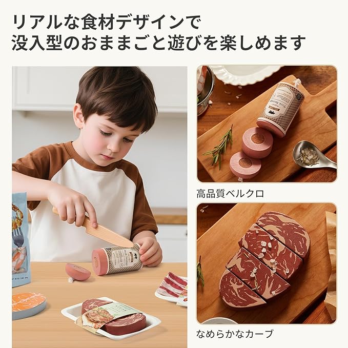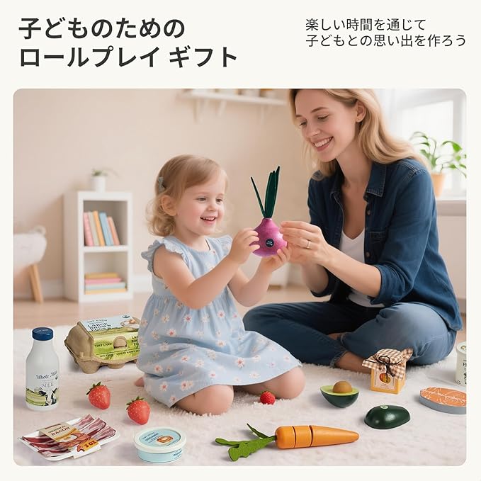知育・ロールプレイ:食材の名前を覚えたり、調理の真似をしたりするロールプレイに適しています 。指先の動きや想像力を活用する遊びをサポートします 。