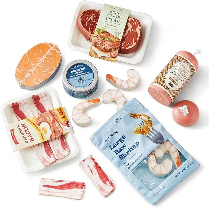 Tiny Land おままごとセット 木製 食材 6点入り 肉 魚介類 セット 木のおもちゃ 知育玩具 料理ごっこ 子ども 誕生日 ギフト