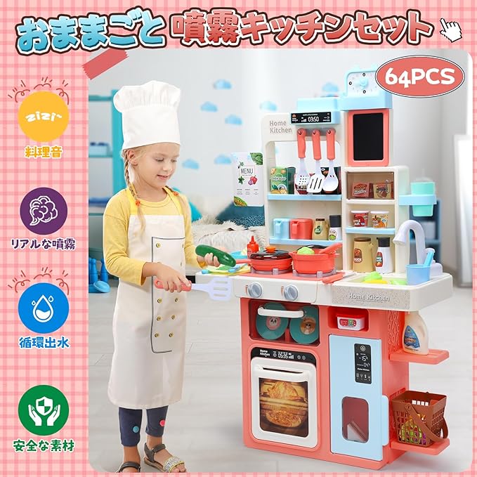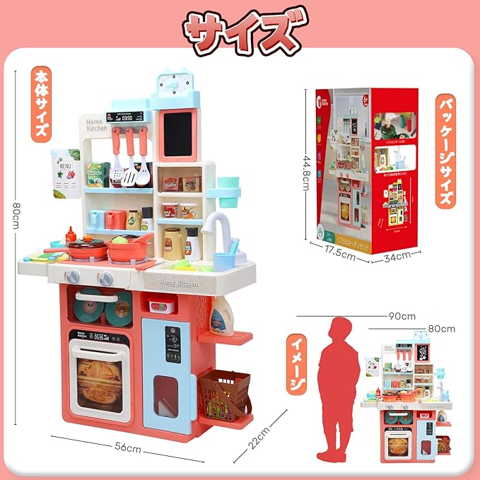 【リアルな料理雰囲気】リアルな噴霧、光り、煮音が付いており、本物に負けないぐらいマイキッチンになります。 また、蛇口は実際に水を出すことができます。子供が台所で料理のやり取りを真似し、リアルな気分を味わえ、楽しいままごと遊びを楽しめます。