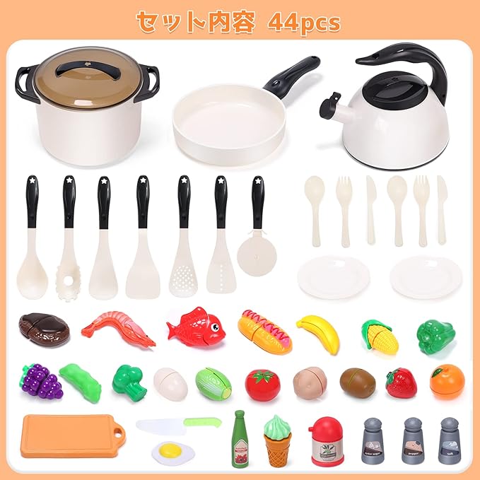 Cute Stone おままごと キッチンセット おもちゃ 知育玩具 44点セット ままごと用調理器具 お鍋 リアルな食材 切る遊び ごっこ遊び 親子遊び 子供 贈り物 誕生日プレゼント ギフト