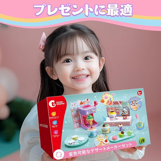 おままごと Cute Stone おもちゃ アイスクリーム屋さん 44点セット 知育玩具 2in1遊び方 DIY 色変化可能 カップケーキ アイスクリーム 温度感応機能付き ままごとセット ごっこ遊び こどものおもちゃ 誕生日 プレゼント 入園お祝い