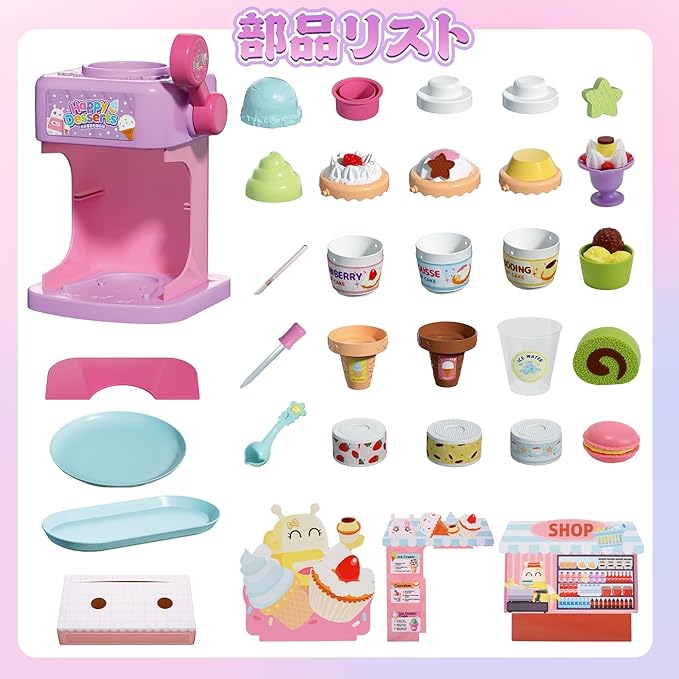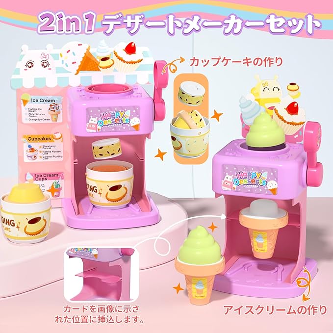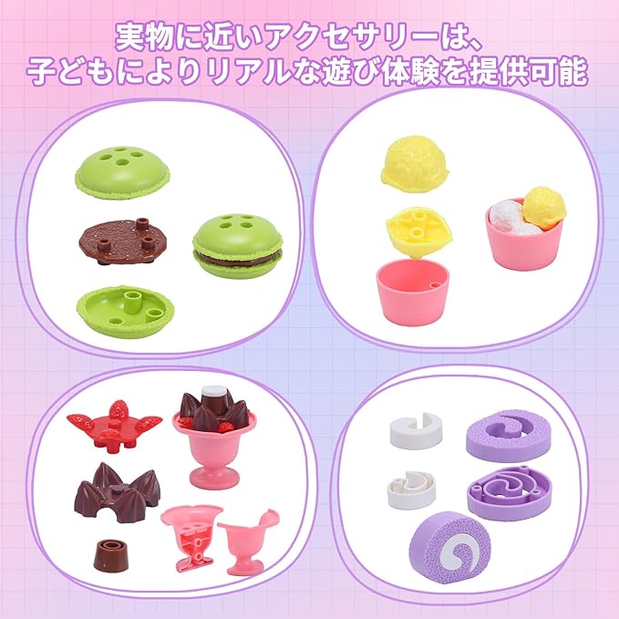 【豊富なおままごとセット&DIY可能】このセットでは、アイスクリームとカップケーキの両方を楽しめます。さまざまなアクセサリーを使って、自分だけのオリジナルアイスクリームやデザートを作ることができます。