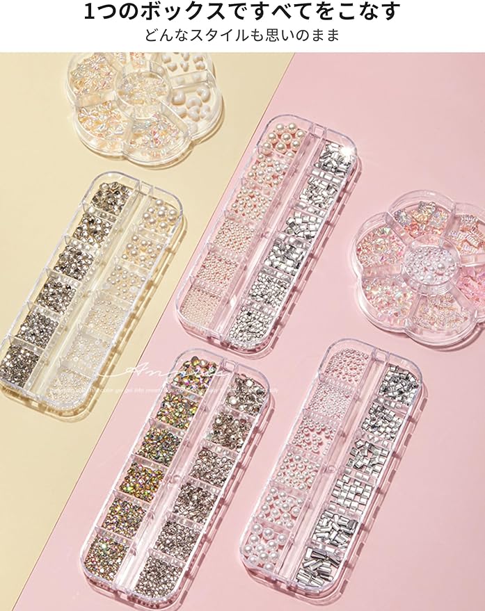 【数量】様々な種類のネイルアクセサリーが用意されているので、好みに合わせてお使いいただけます。サイズ数はまちまちです。あらゆるネイルに対応しています。初心者やDIYデザイナー向けです!