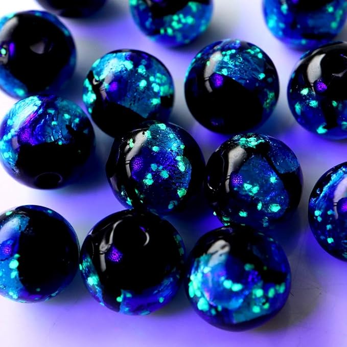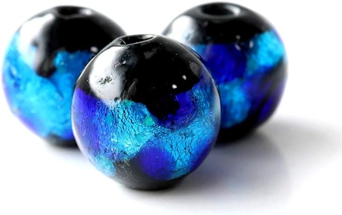 [GOLD STONE] 光る ホタルガラス ブルー 8mm 粒売り とんぼ石 青色 沖縄 typeA 3粒売り