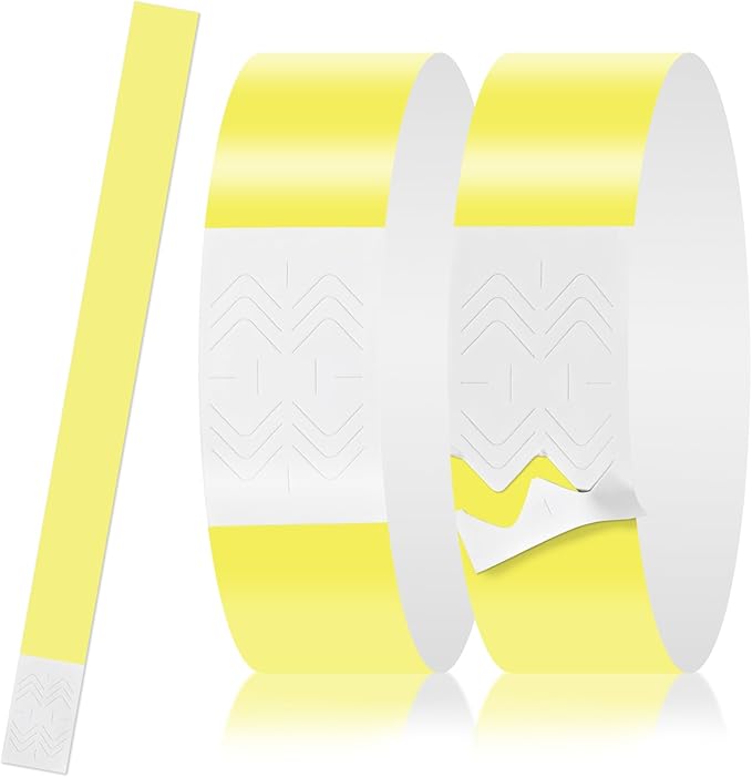 リストバンド 使い捨て イベント用 14色100枚/ 200枚/500枚/1000枚 合成紙 蛍光 防水 耐引裂き 手書き可 再入場管理 チーム分け 識別 管理に最適 (蛍光イエロー, 100枚)