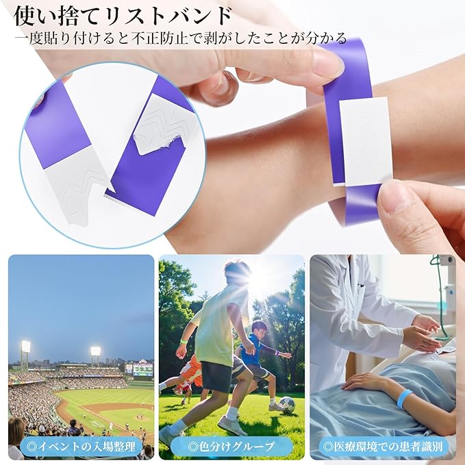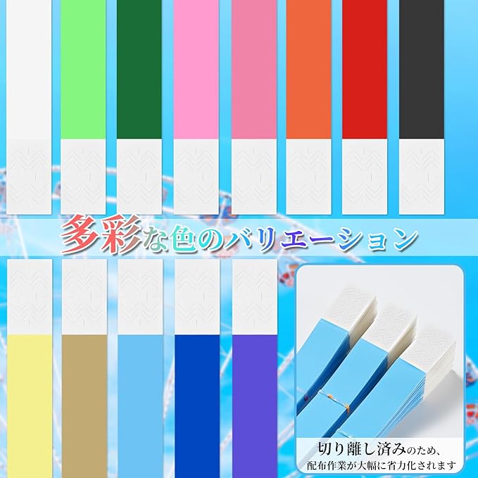 【防水性抜群&あらゆるシーンで活躍】:防水性に優れたイベント用リストバンドです。海や川、プール、温泉などの水濡れが避けられない環境でも安心して使用できます。海の家やプールでの入退場管理、温泉施設でのコース分けなど、多様なシーンで活躍し、スムーズな運営をサポートします。
