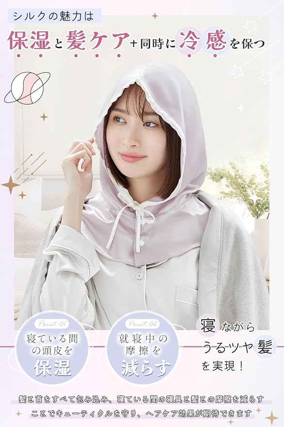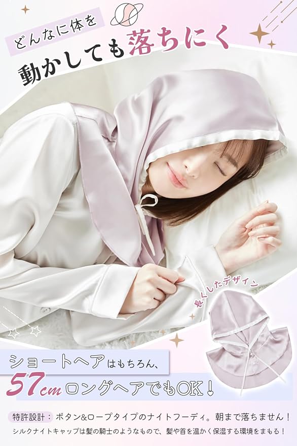 [Utukky] ナイトキャップ シルクキャップ 帽子デザイン シルク100% ナイトフーディ 朝まで脱落なし 跡が残らず 簡単装着 ないときゃっぷ ヘアキャップ 静電気防止 枝毛防止 摩擦軽減