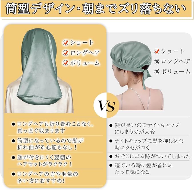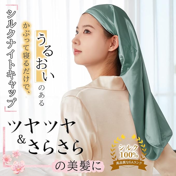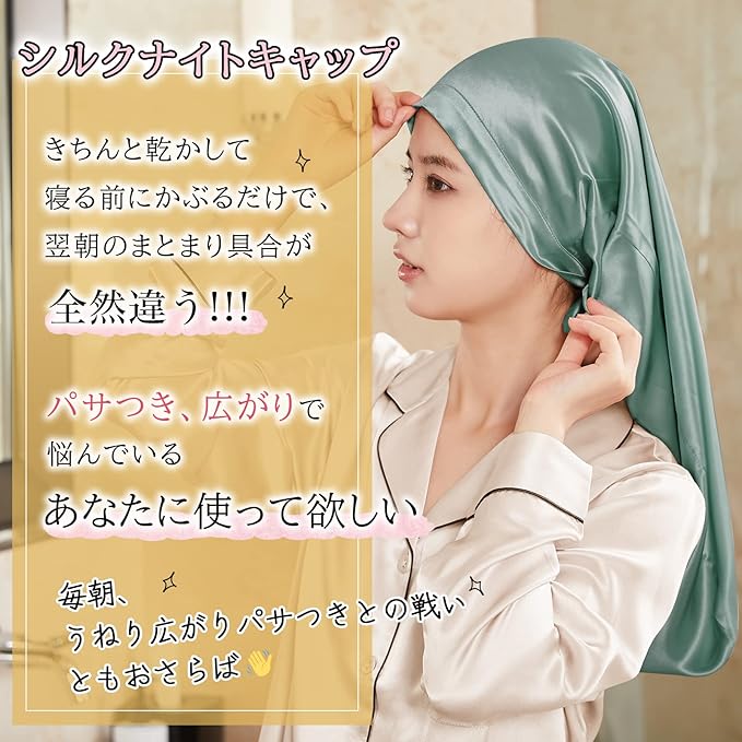 [Utukky] シルクナイトキャップ ロングヘア用 シルクキャップ 筒型 簡単タイプ 朝まで脱落なしプシルク100% ないときゃっぷ 筒状 ヘアキャップ サイズ調整可能 枝毛・寝癖防止 就寝用 誕生日 プレゼント