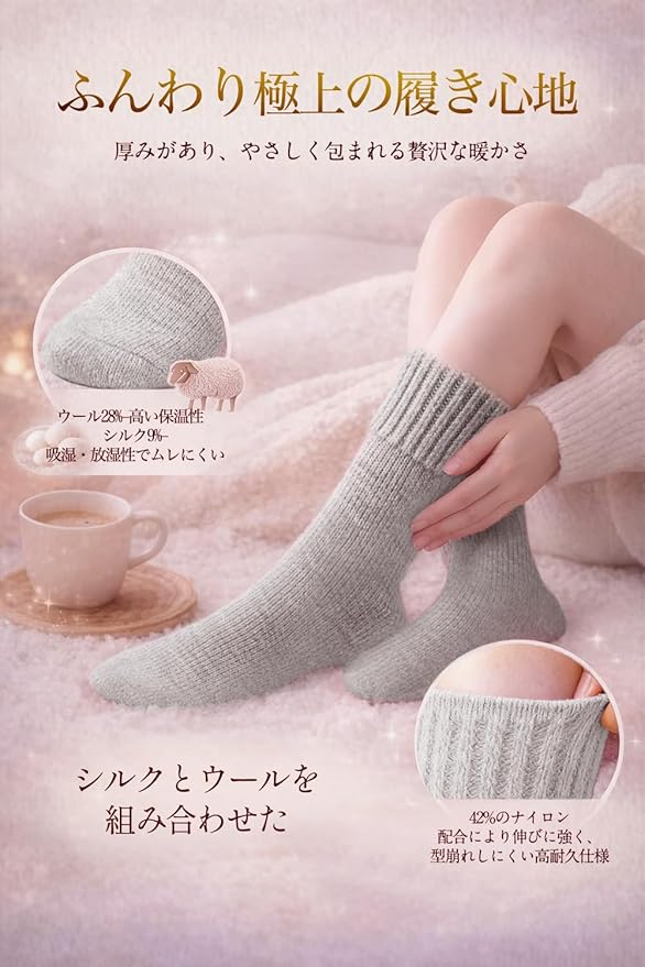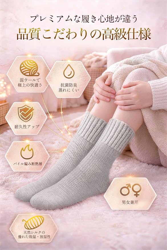 [Utukky] 靴下 あったかい ウール混シルク 厚手 ルームソックス 冬用 防寒 極暖 吸湿発熱 保湿・抗菌防臭 レディース メンズ