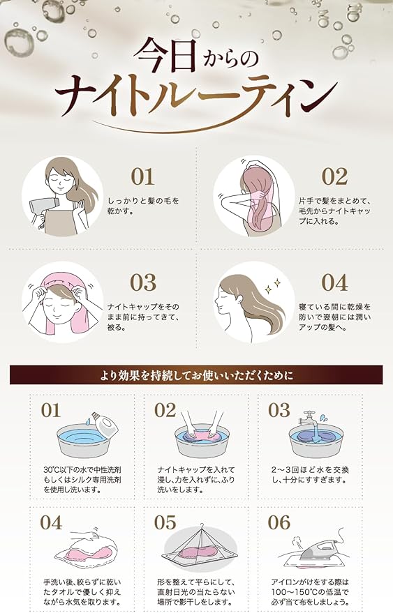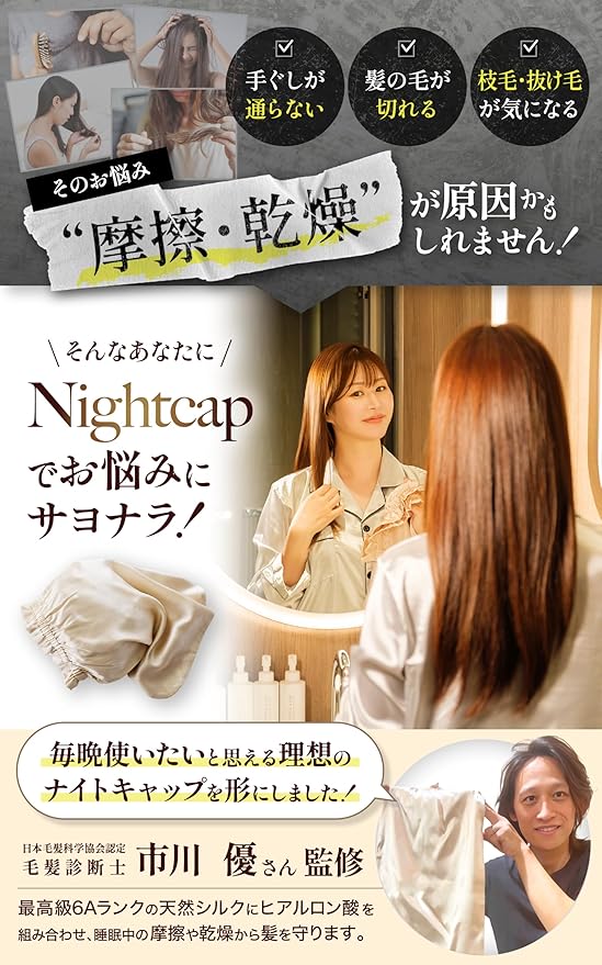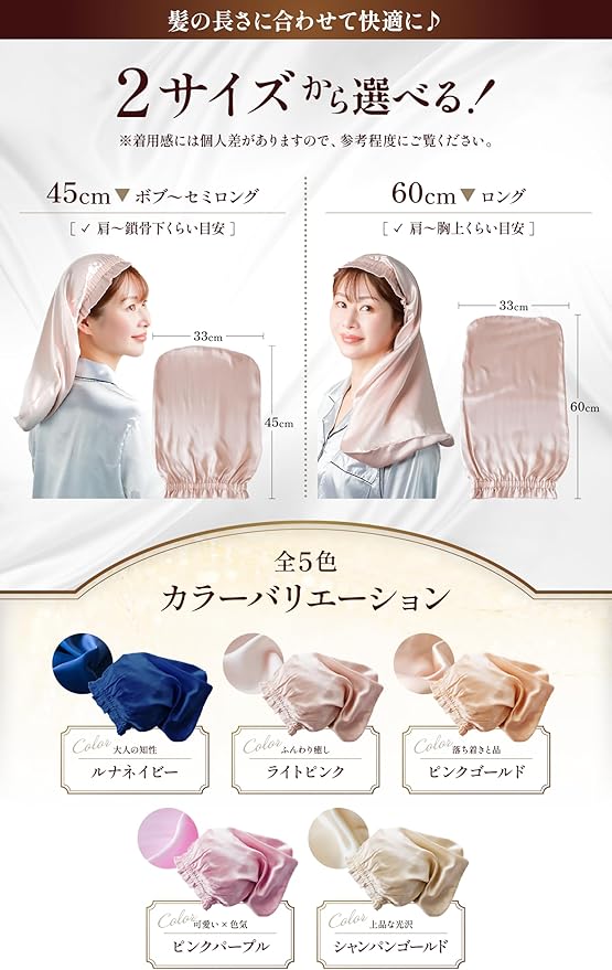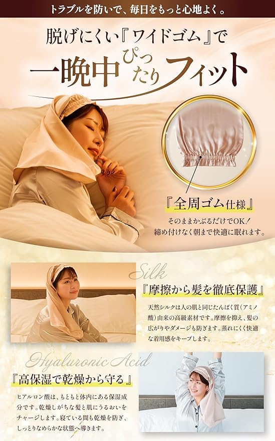 [Beliora] 【髪質改善のプロ監修】 シルク ナイトキャップ シルク100% 【ヒアルロン酸配合】 ロングヘア用 ショートヘア用 被るだけでサラ艶髪へ
