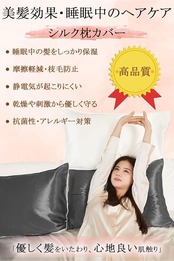 ❤【肌に優しい「シルクの枕カバー」】美しい肌の基本は保湿であることはよく知られています。シルクには保湿作用がありますが、それと同時に吸湿性・放湿性・通気性にも富んでいます。「肌の万能薬」と言われたシルクは、寝ている間も肌の潤いをキープ、シミやシワの抑制も期待できます。また、シルクの繊維は微細な多孔質構造となっており、空気を多く含むことができるため、就寝中の髪や地肌を冷えから守り、オールシーズン大活躍!