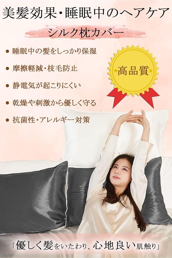 ❤【抗菌性・静電気防止】シルク繊維は天然の保湿成分セリシンで覆われており、静電気が発生しにくく、朝の髪の乱れを軽減してくれます。シルク枕カバーは長く使っていくうちに、髪が段々柔らかく滑らかになって光沢がでてきたりと髪質改善を実感できます。シルク枕カバーは保湿性や通気性、保温性に優れているだけでなく、抗菌性にも優れているのでとっても衛生的。