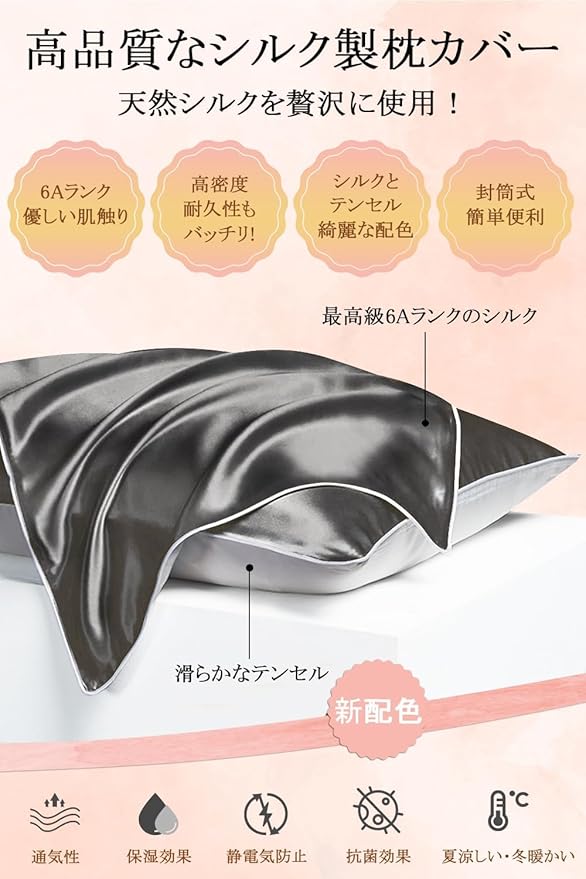 7月16日放送の日本テレビ「ゼロイチ」にてUtukkyシルク枕カバーが紹介されました!皆様のご愛顧ありがとうございます!❤【天然シルク・テンセル枕カバー】Utukkyシルク枕カバーは、片面に高品質の6 Aランクのシルクを採用し、もう片面にシルクのような滑らかな天糸(テンセル)を採用しています。シルク独特の光沢感で高級感のある一品。シルクは人間の肌と同じくたんぱく質で構成されているため、吸湿性と放湿性にも優れ、お肌に優しい! シルク枕カバーデビューにおすすめ!