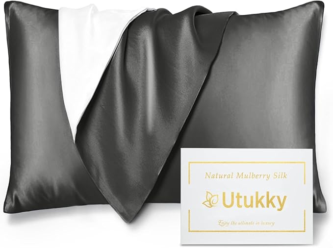 Utukky シルク枕カバー【TVで紹介】まくらカバー 片面シルク 43 63cm 封筒式枕カバー シルクピローケース テンセル 洗える 寝癖軽減 抗菌防臭 美髪・美肌 敏感肌に優しい ギフト 贈り物 四季適応 シルク初心者に 1枚セット ダークグレー