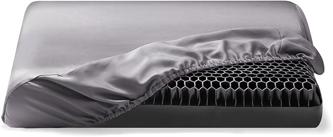 [THXSILK] シルク枕カバー 片面100%シルク 裏面テンセル付き 伸縮式デザイン 最高グレード6A OEKO認証済 洗濯機可 寝癖軽減 美髪・美肌 静電気防止 防ダニ・抗菌 贈り物 33~47*50~67*3~16cm枕 四季適応 一枚(43*63*15cm グレー)