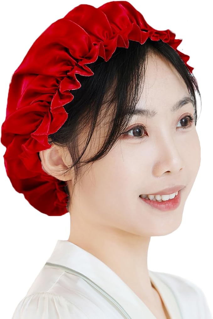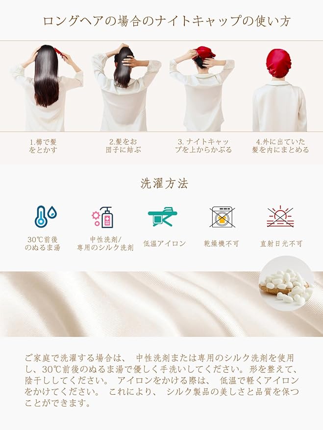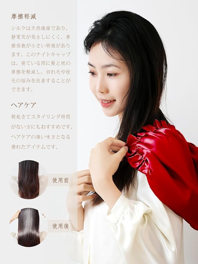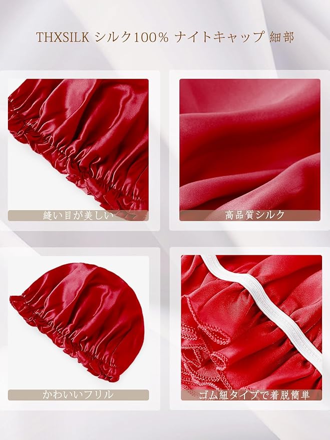 [THXSILK] ナイトキャップ 寝るとき帽子 ヘアキャップ シルク100% 最高グレード6A OEKO認証済 切れ毛・枝毛防止 ツヤ髪 ゴム付き 着脱簡単 ロング&ショットヘア 就寝用 産後用 ギフト 贈り物 一枚