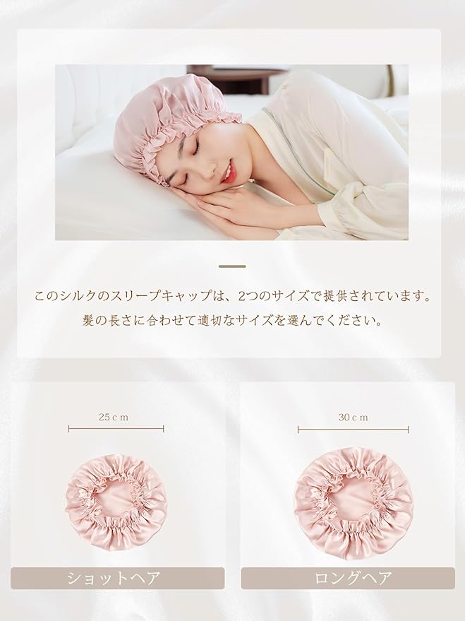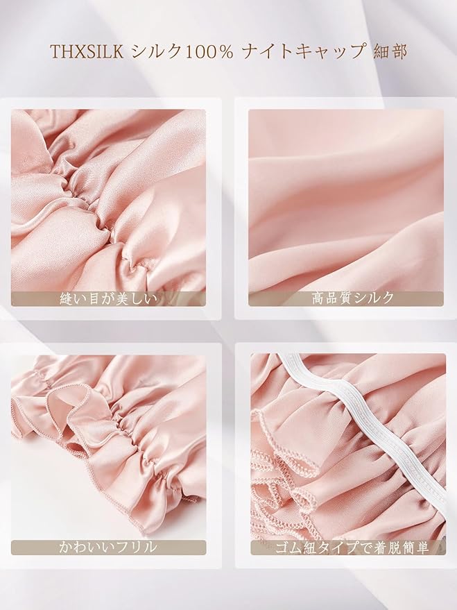 [THXSILK] ナイトキャップ 寝るとき帽子 ヘアキャップ シルク100% 最高グレード6A OEKO認証済 切れ毛・枝毛防止 ツヤ髪 ゴム付き 着脱簡単 ロング&ショットヘア 就寝用 産後用 ギフト 贈り物 一枚