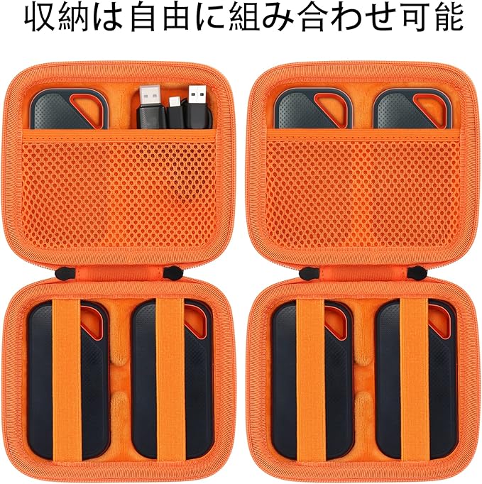 【独立スペース】収納ケースはSanDisk Extreme SSDやアクセサリーなどを収納できる4つのスロットを備えた設計で、伸縮性のあるストラップとメッシュバッグで固定されているため、SanDisk Extreme Pro ssdが落ちる心配はありません。