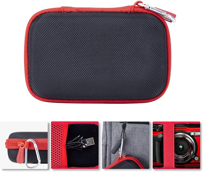 Aenllosi 収納ケース 互換品 OM SYSTEM(オリンパス) デジタルカメラ Tough TG-7 / TG-6 / TG-5 / TG-4 / TG-3 / TG-2 (レッド ジッパー)(ケースのみ)