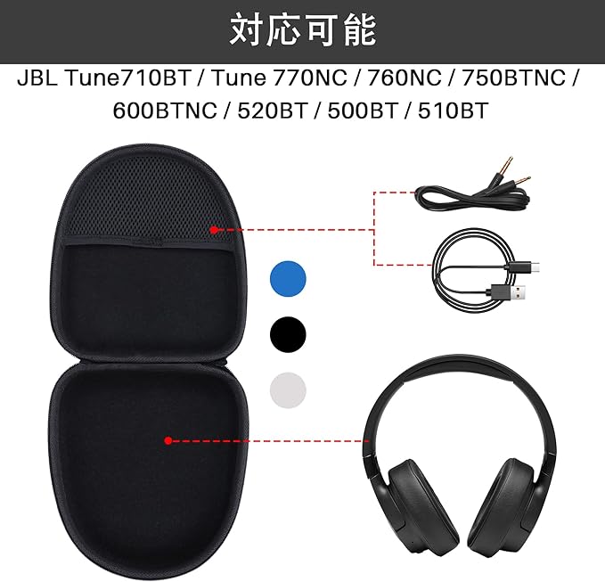 Lebakort収納ケースと互換性のあるTune 710BTワイヤレスヘッドホン bluetooth密閉型 770NC 760NC 750BTNC 600BTNC 520BT 500BT 510BT (オフホワイト ケース)