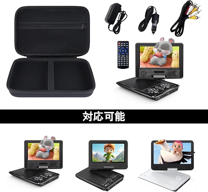 Peyyargo収納ケースと互換性のある9.5インチ Roommate/Surfola/Dbpower ポータブルDVDプレーヤー 【ブラック ケース】