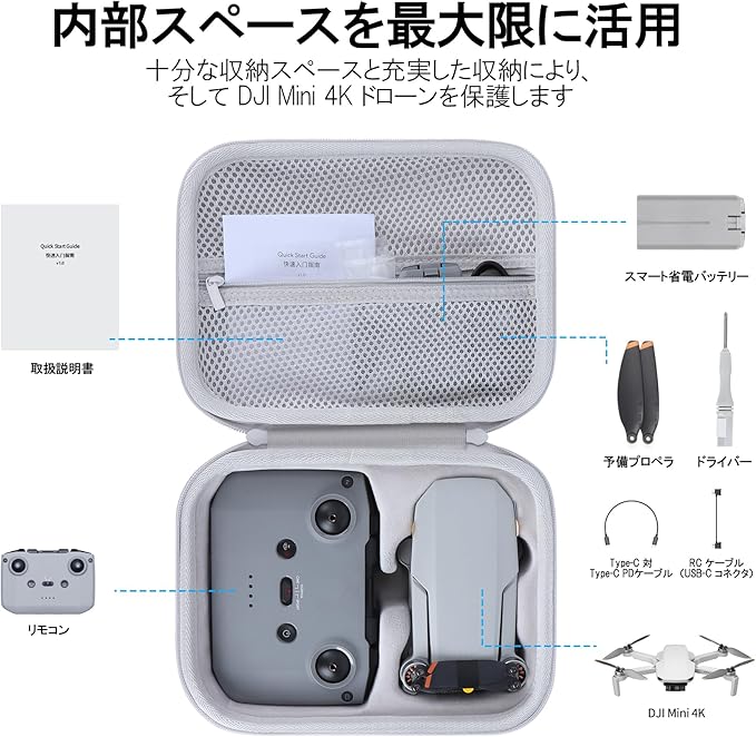 Peyyargo収納ケースと互換性のあるDJI Mini 4Kドローンカメラ及びリモートコントローラー【グレー ケースのみ】
