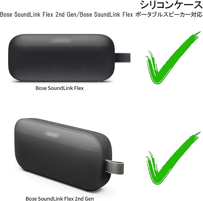 Peyyargo シリコンケースは Bose SoundLink Flex Portable Speaker (第2世代)、Bose SoundLink Flex Portable Speaker に対応しています。Peyyargo シリコンケース表面の滑り止めと快適なグリップ感で、Bose SoundLink Flex 1st Gen、Bose SoundLink Flex 2nd Gen を持ったときは汗をかいてもすべりにくく、片手で簡単に取り出せます。また、両機種の携帯中の持ちやすさも向上させます。短い旅行でも荷物の中に入れて持ち運びしやすくなります。ご注意:本商品は Bose SoundLink Flex Portable Speaker (第 2 世代) 及び同機種基礎款 専用シリコンケースのみです。Bose SoundLink Flex Portable Speaker (第2世代)、Bose SoundLink Flex Portable Speaker 本体及びその他付属品は含まれません。