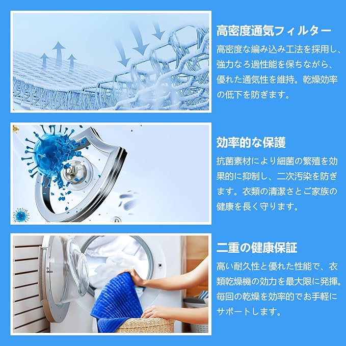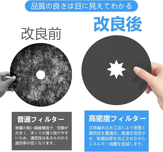【品質の良さ】:乾燥機 フィルターはエコな防臭紙を採用しており、濾過能力抜群、衣類から落ちる繊維やホコリを確実に捕集します、効果的な防臭と抗菌作用を発揮します。乾燥効率向上とエネルギー節約、フィルターが空気の流れをスムーズにし、乾燥時間を短縮します。