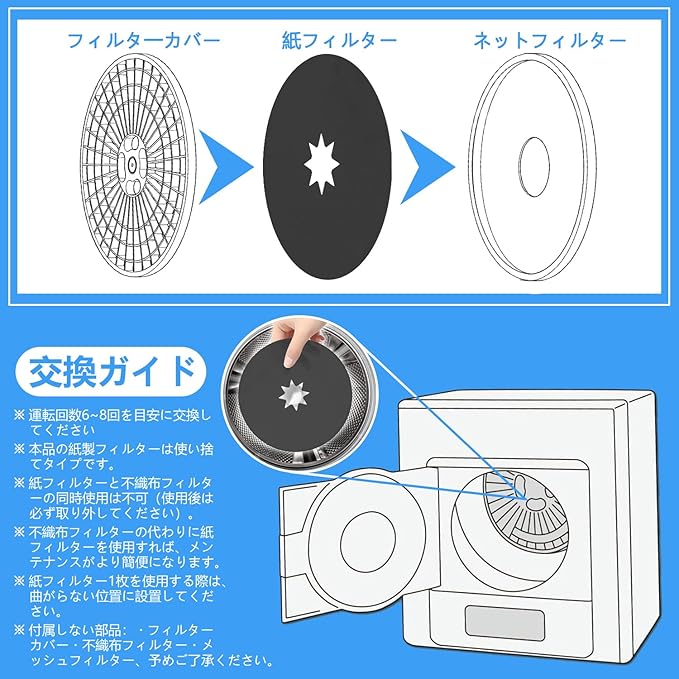 【使いやすい】:乾燥機フィルターは利便性を考慮して設計されています。乾燥機用フィルターを使うとき、不織布のフィルターを外して、使い捨ての紙フィルターをネットとフィルターカバーの間にセットするだけでいいんですよ。埃をしっかりと捕まえてくれますので、操作が簡単です。
