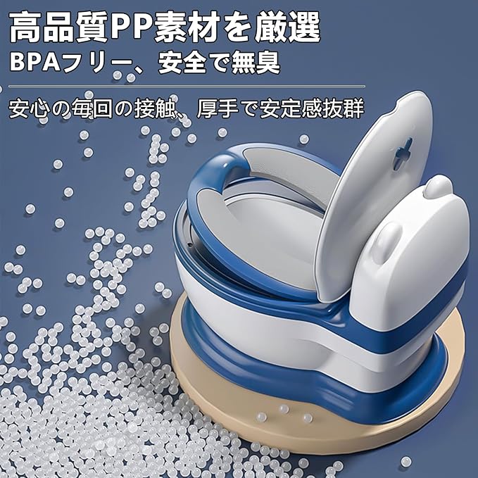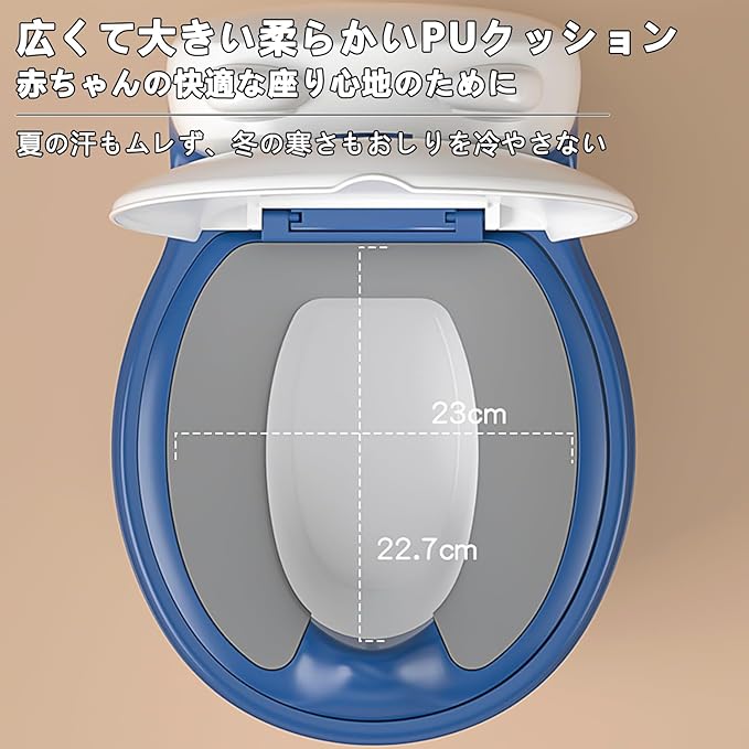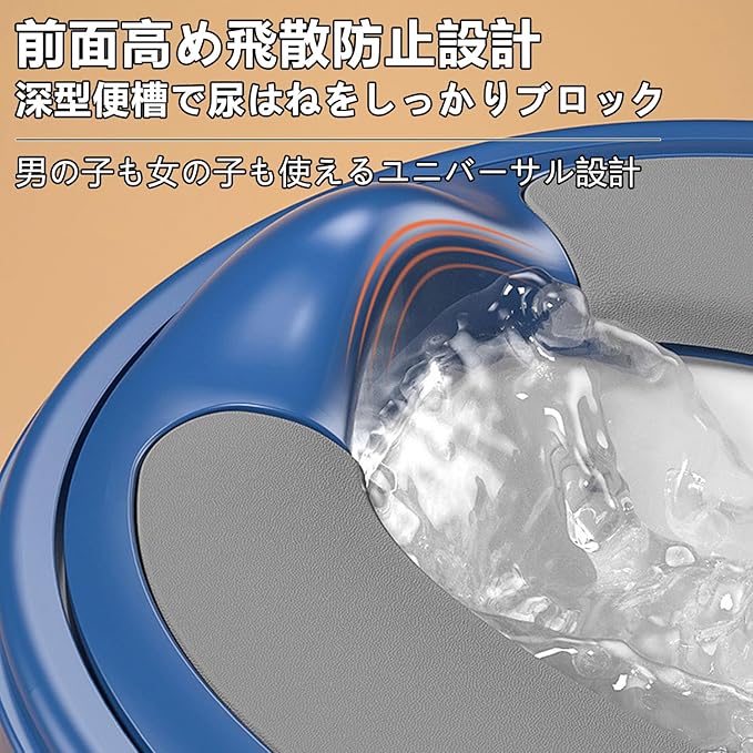 【細部までこだわった設計】:初めてのトイレチャレンジから習慣化まで、すべてのプロセスに配慮。高密度PUクッションを採用し、冬は冷たくなく、夏は汗でべたつかず、耐久性に優れ臭いも吸着しにくい快適設計。前部の防はね構造で、座り方が多少乱れても飛び散りをしっかりガードします。