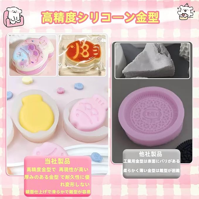 セット内容で届いてすぐ作り始められる! AB液、専用シリコンモールド(多形状)、浮遊パウダー(蜜粉)など、必要な材料が全て同梱。特別な準備は不要で、混ぜて流し込むだけの簡単工程で、世界に一つのオリジナルニードルームが完成します。※本製品は型取り用シリコンセットではありません