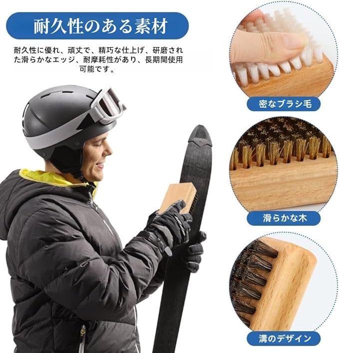 【耐久性素材】このスキーブラシはブナ材と馬毛/ナイロンブラシ毛/真鍮ブラシ毛で作られており、長持ちし、精巧な作りで、縁が滑らかで耐摩耗性に優れ、長期間使用できます。