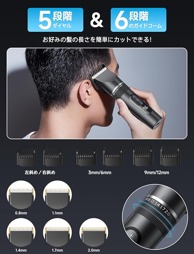 バリカン 2025新登場 USB充電式 ヘアーカッター 電動バリカンメンズ IPX7防水 5段階刈り高さ調節 3段階スピード LEDディスプレイ 大容量バッテリー 自動研磨 6種類ガイドコーム 低騒音 コードレス 子供 家庭用 散髪用 業務用 セルフカット 坊主 ツーブロック 軽量