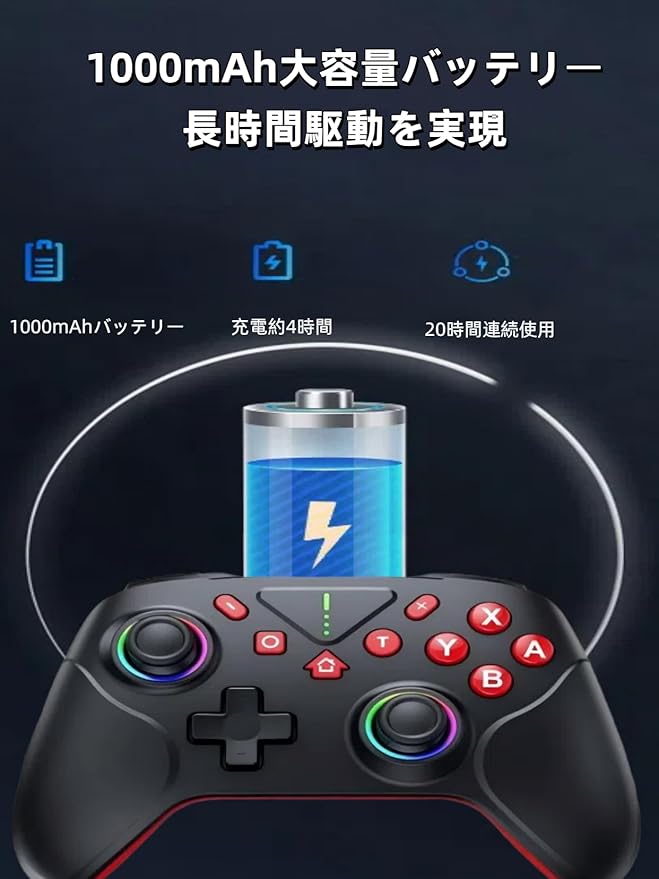 【大容量バッテリー&長時間プレイ】1000mAhバッテリー内蔵で、長時間のゲームプレイも安心してお楽しみいただけます。