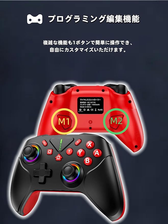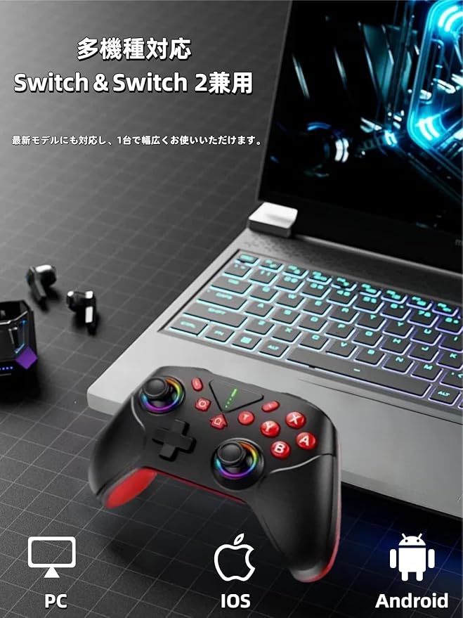Switch2 コントローラー Switch1/2代対応 TURBO連射機能 1000mAh大容量 Bluetooth 無線接続 ジャイロセンサー搭載 4階段HD振動 Switch全世代に対応 Android/IOS/PCにも対応 日本語取扱説明書付き