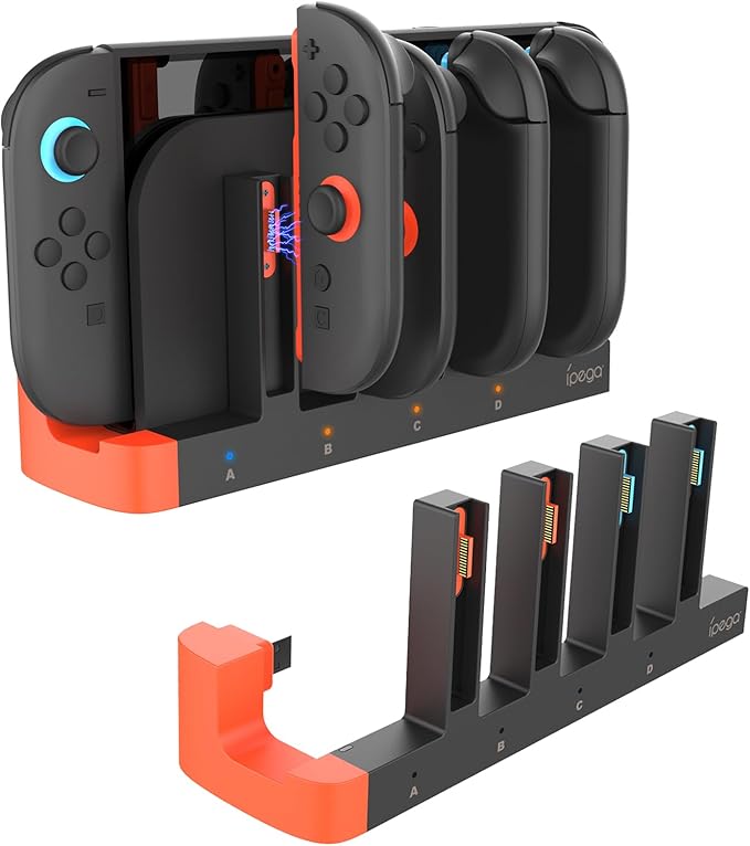 Switch 2 ジョイコン用 充電スタンド Tomistan Joy Con用 コントローラー磁吸充 電 対応 4台同時充 電可能 ジョイコン用 右/左 急速充 電器 LED充 電指示ランプ付き (TM10E)