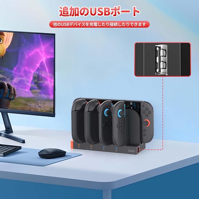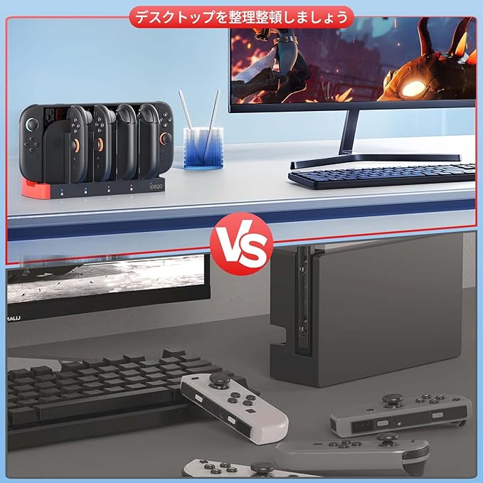 【省スペースで便利】Switch 充電器を取り付けるのは良い選択で、デスクトップのスペースを節約し、ゲームエリアを整然とさせ、 あなたの家の装飾にぴったりです。Switch コントローラー 充電器マウントにより、ゲームエリアを清潔に保ち、使い勝手がよく、コンソールやアクセサリを衝突または破損させるリスクを軽減します。
