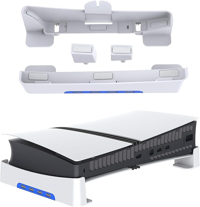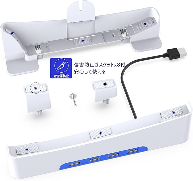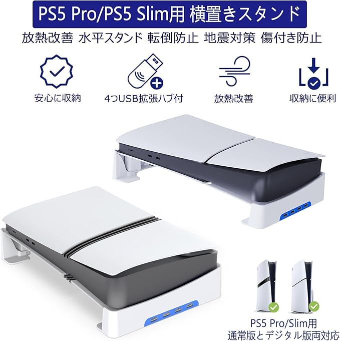 ps5 Slim/ps5 pro用 スタンド PS5 Slim 横置きスタンド Tomistan 【新登場】 4つUSB拡張ハブ付 地震対策 放熱改善 新型PS5 用水平スタン ド 転倒防止 傷付き防止 簡単に取り付けます 本体をもっと安心に収納新型 PS5の通常版とデジタル版両対応(ホワイト)
