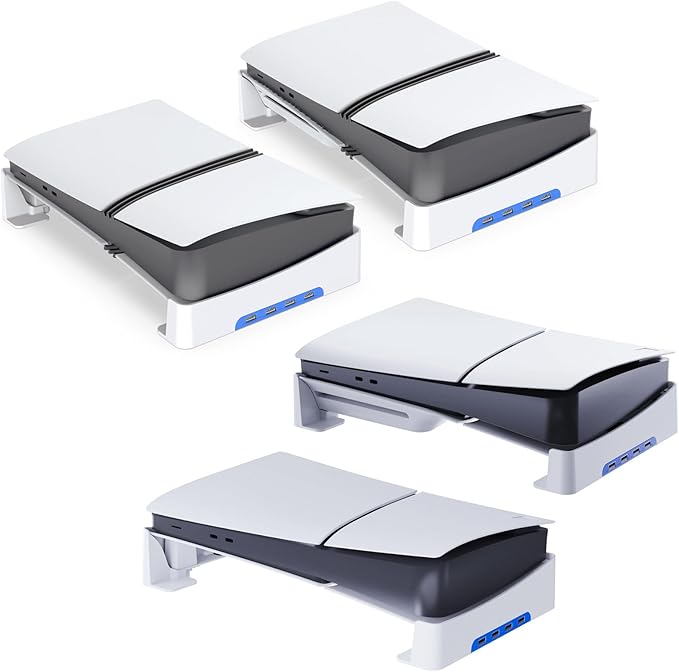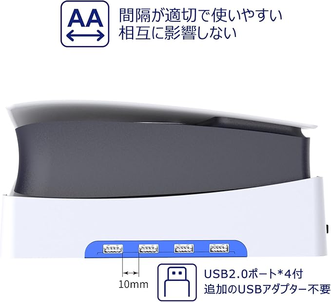 【4つのUSBポート付き】:ps5 pro用/新型 ps5 Slim用スタンドを使用して、コンソールのUSBポートを1つから4つに拡張しして(、幅広い互換性を実現します。コントローラー、マウス、キーボード、USBケーブル、ハードドライブなどの周辺機器を同時に使用できます。