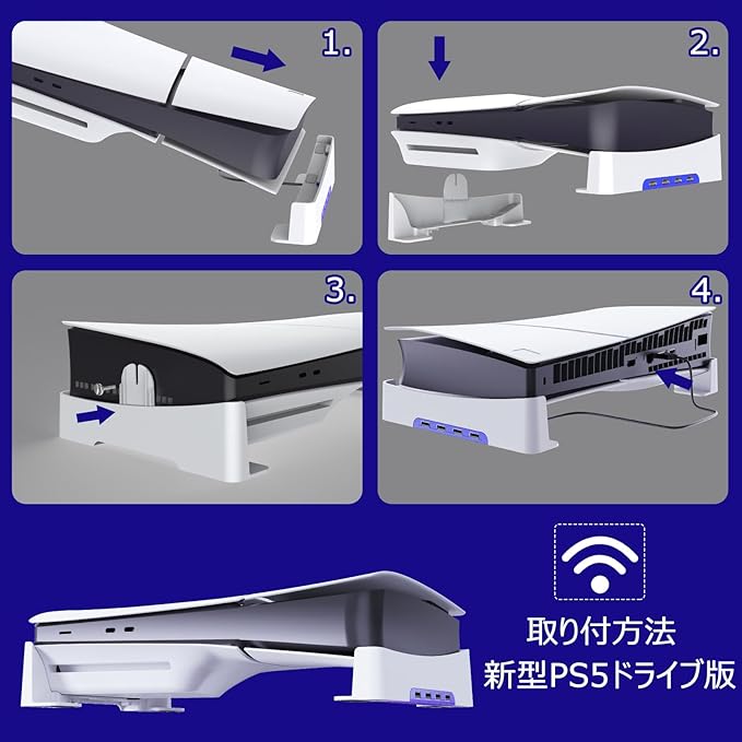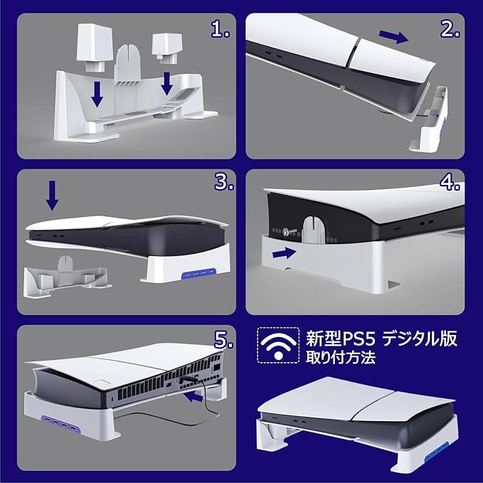 【対応機種】ps5 pro用/新型 ps5 Slim用(通常版とデジタル版両対応)専用の横置き収納スタンドです。PS5の下部に隙間ができ、通気性が良くて熱がこもりにくくなります! (ご注意:PS5本体と コントローラーは含まれません)