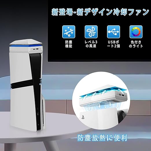 【新登場PS5 Pro用上部冷却ファン】PS5 Pro用上部放熱ファン。防塵設計、3段調整可能冷却システム、8モードRGBカラーランプバンド、追加2つのusbポート。これらの機能は、プレステ5 pro本体寿命を延長し、ゲーム体験を向上させるだけでなく、クールなゲーム気分を提供します。ディスク/デジタル版の両対応。