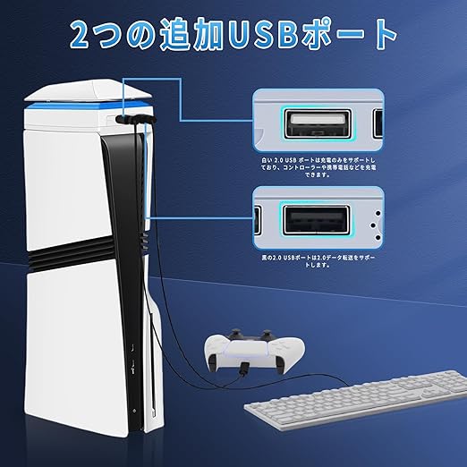 【追加2つUSBポート】2つのUSBポートがあり、1つの黒い2.0 USBポートは2.0データ転送をサポートし、1つの2.0 USBポートは充電のみをサポートし、コントローラ、電気スタンド、携帯電話など、より多くの製品を充電することができます。