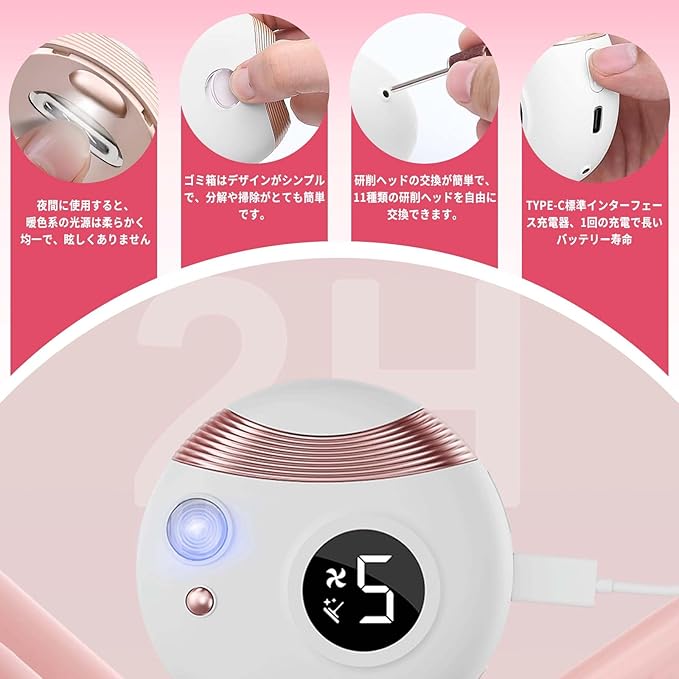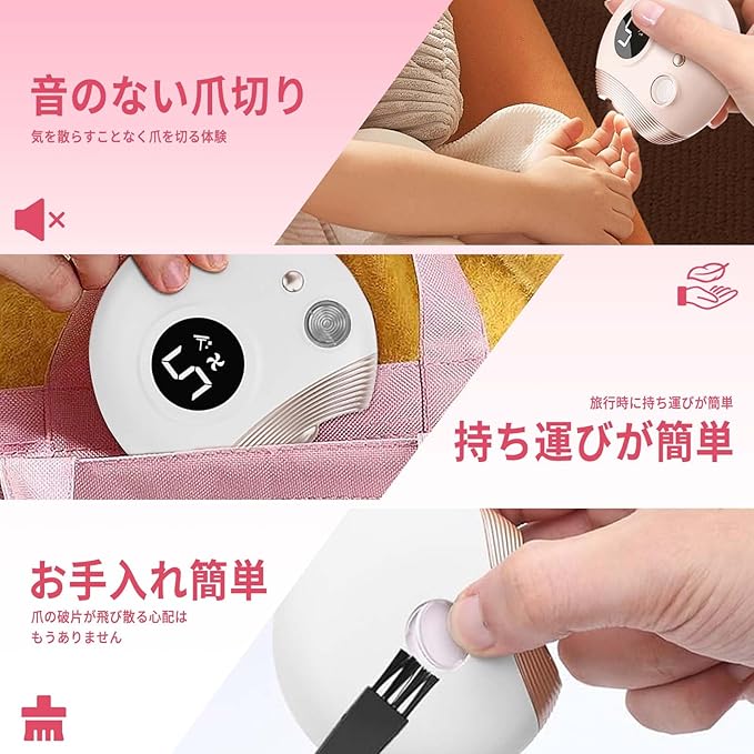 【5段階速度調節&高い安全性】この電動爪切りは、5段階の調速機能を備えており、赤ちゃんの柔らかい爪は低速モード、大人や高齢者の硬い爪は高速モードで用途によって使い分けてお使いください。(また、この電動爪削りは安全ロック設計を採用しているので、子供が誤傷する心配もありません。)